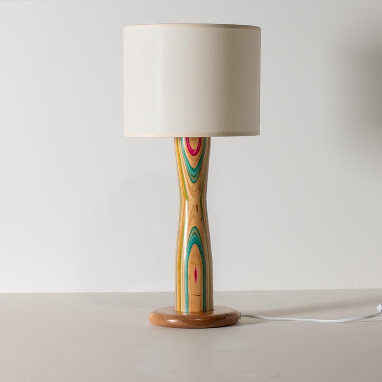 It's base is crafted from Australian Blackbutt, with a body of laminated recycled skateboard decks. Sealed with a plant based hard wax oil to accentuate the colours and protect the timbers for many years to come.