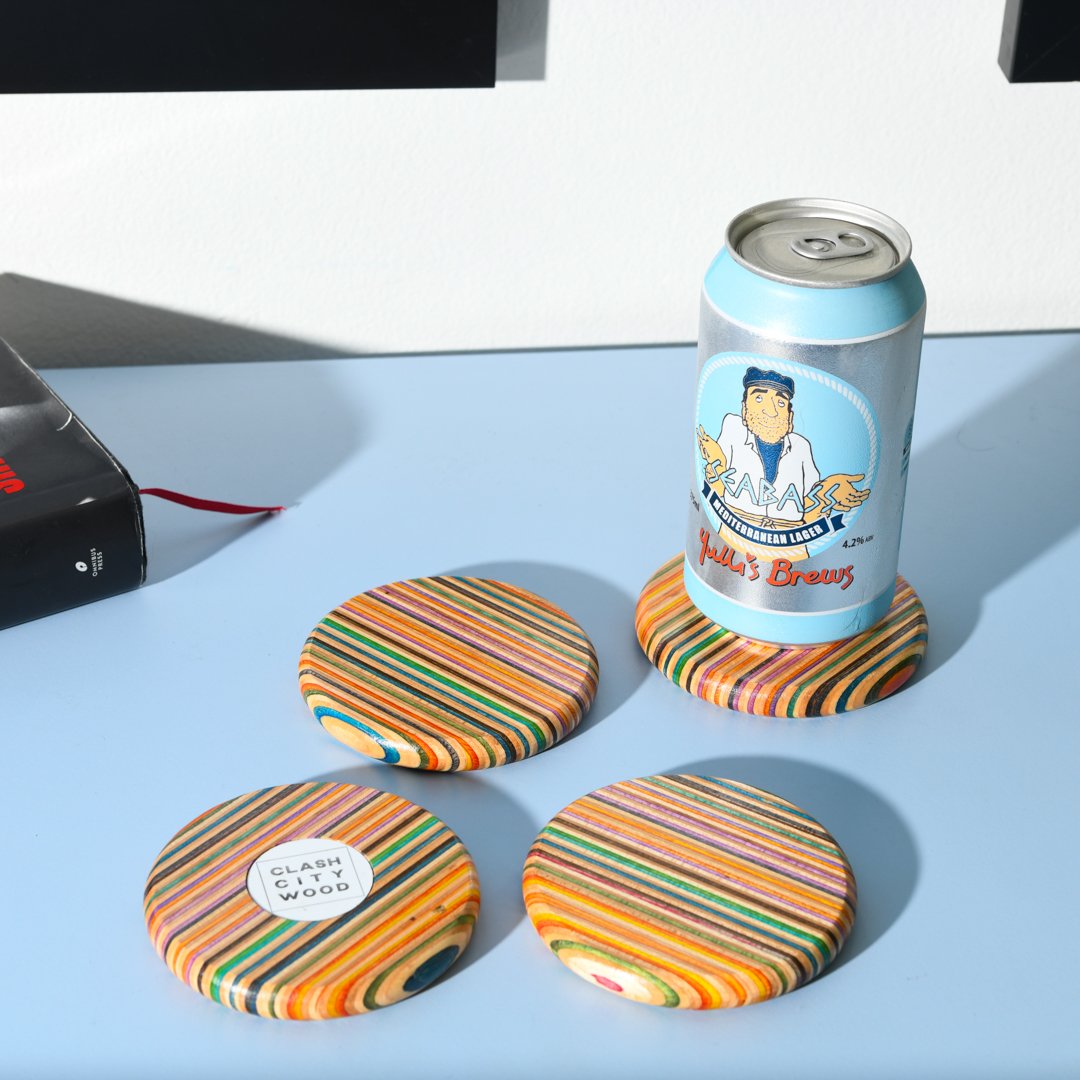 Mini Tinnie Tables - Set of 4 Recycled Skate Coasters